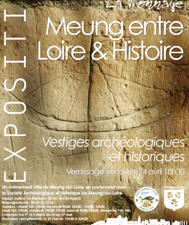 La ville de Meung-sur-Loire en partenariat avec la société archéologique de Meung-sutr-Loire organise jusqu'au dimanche 7 juin prochain une exposition à l'espace culturel "la Monnaye" : "Vestiges archéologiques et historiques".